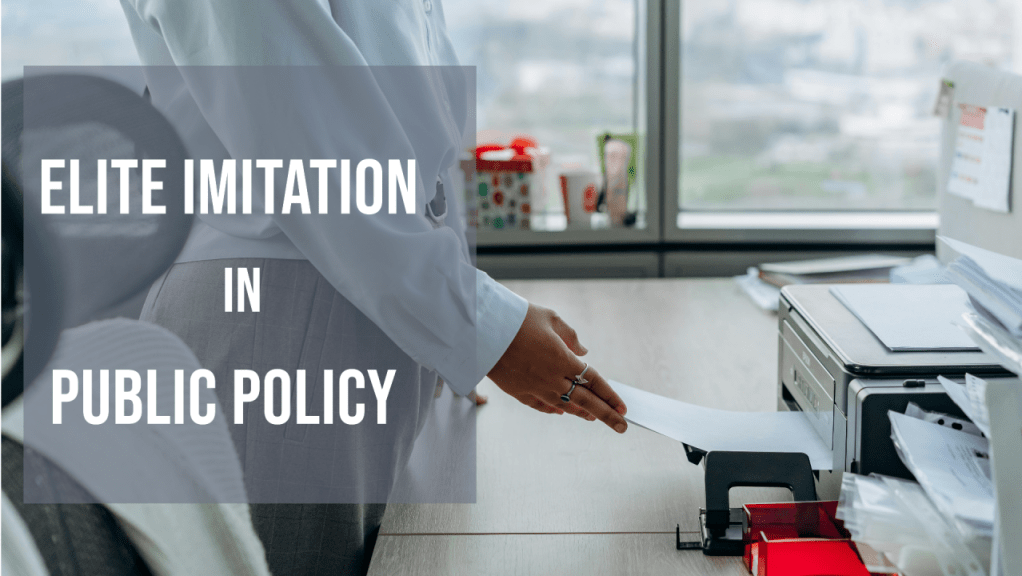 The paper cites Maternity Leave Bill and The Right to Education Act among the examples of elite imitation.